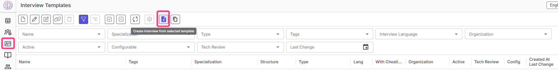 - Click Create interview from selected template in the toolbar.