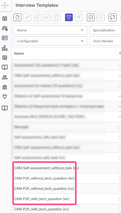 P2P interviews allow you to organize a live video interview between a recruiter and a candidate in real time. The system automatically builds the interview structure based on the selected template and may include technical questions.