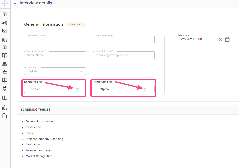 After that, the recruiter sends the link to the candidate by messenger, email, or another convenient method and can return to the interview at the scheduled time.