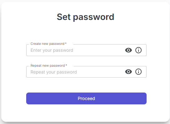- Click Confirm email and set password or follow the link from the email.
