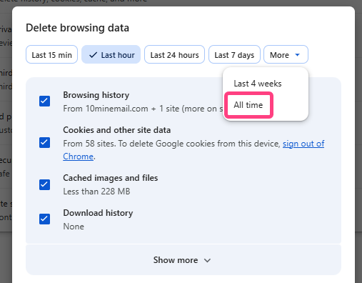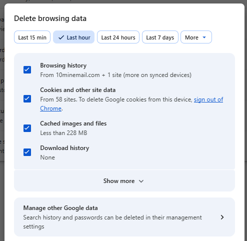 Clearing Data in Google Chrome