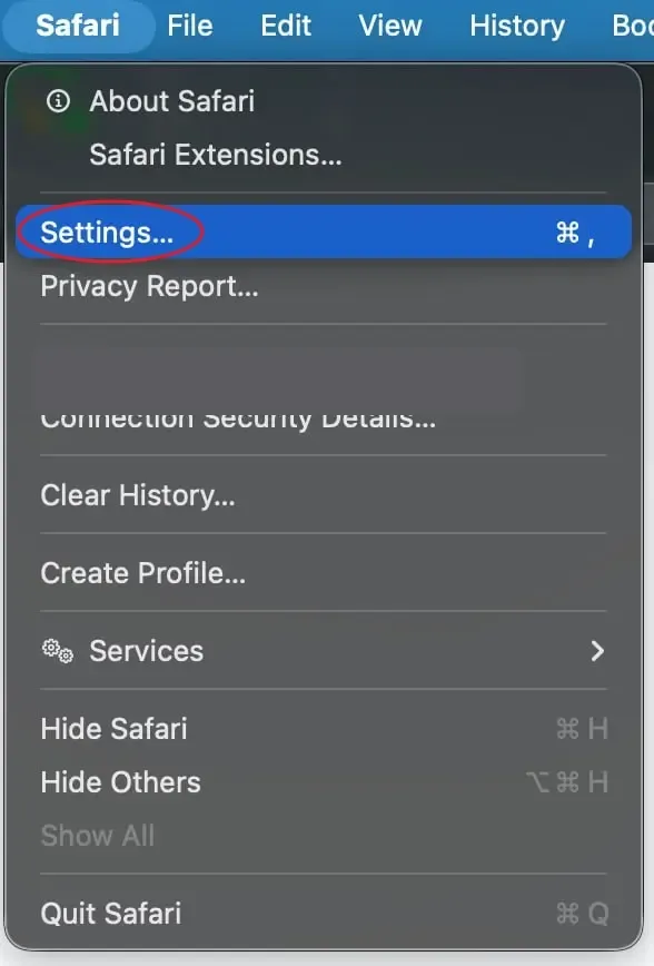 Safari->Settings, orPreferences.