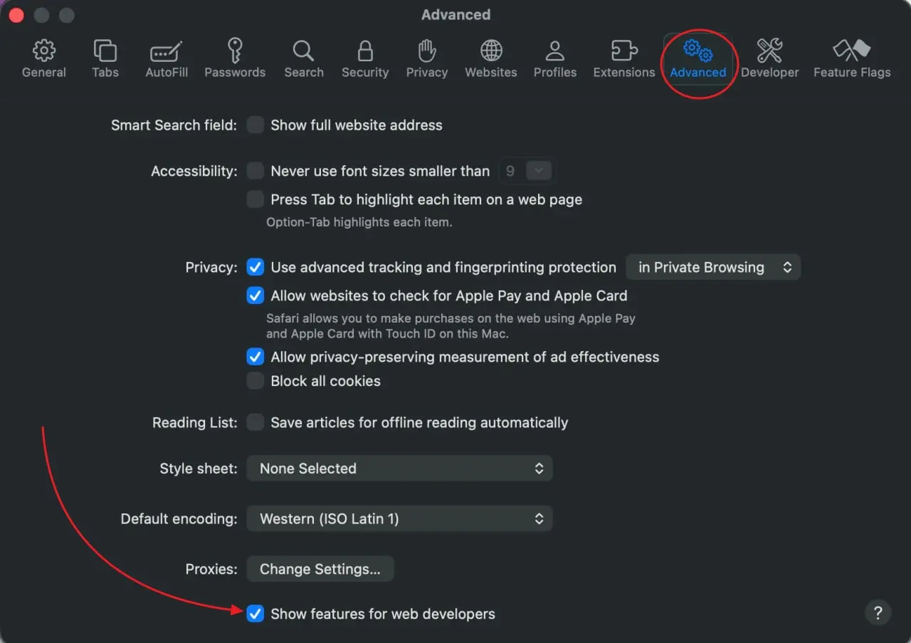 Advancedtab and enable theShow Develop menu in menu baroption.
