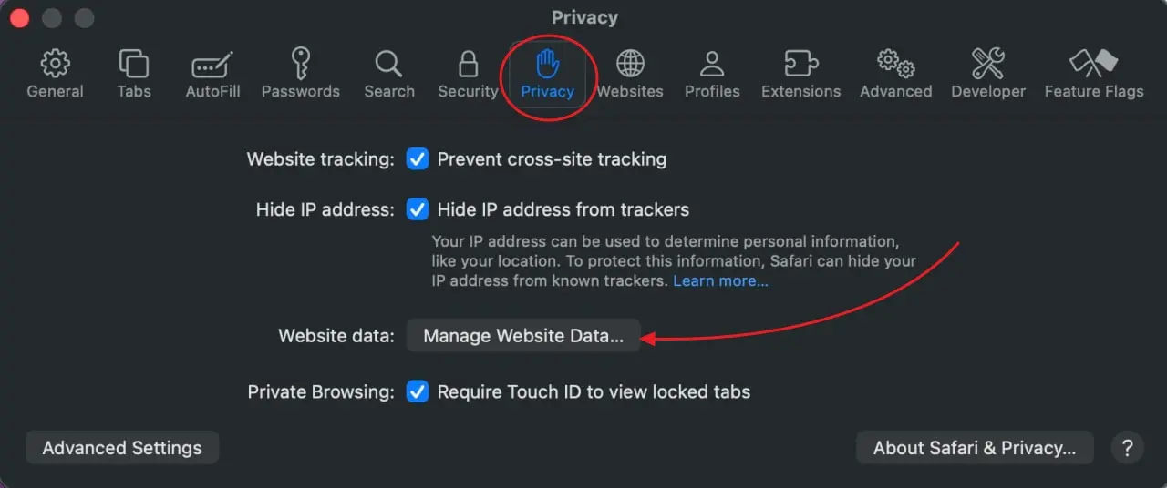 Clearing Data in Safari