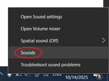 - In the notification area on the taskbar, right-click the speaker icon and select