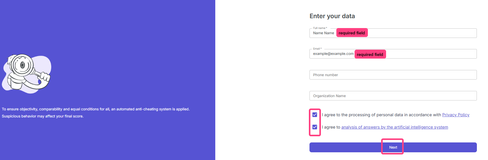 [ ] I agree to the processing of personal data according to the Privacy Policy[ ] I agree to the analysis of answers by the artificial intelligence system